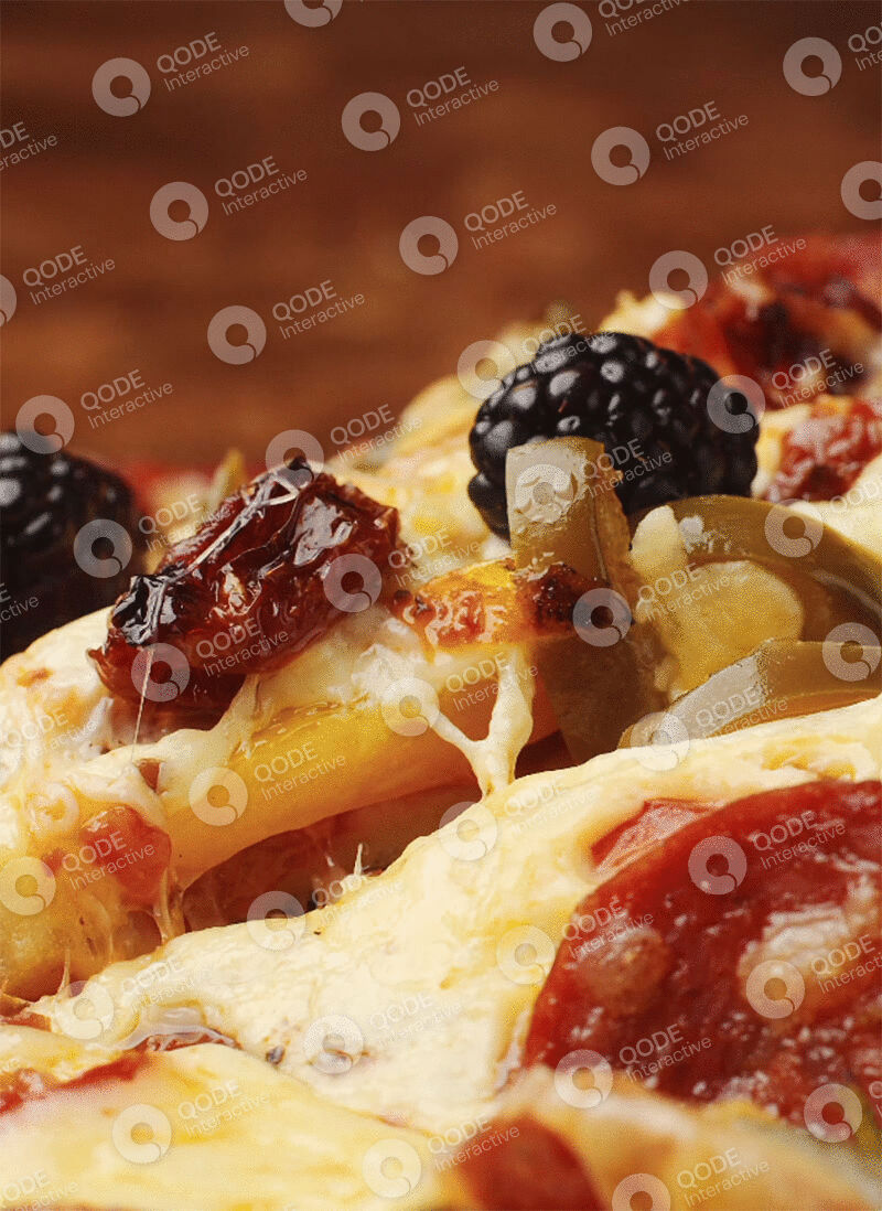 mozzarella, tomatoes, black olives, caramelized onion, salami, ricotta
